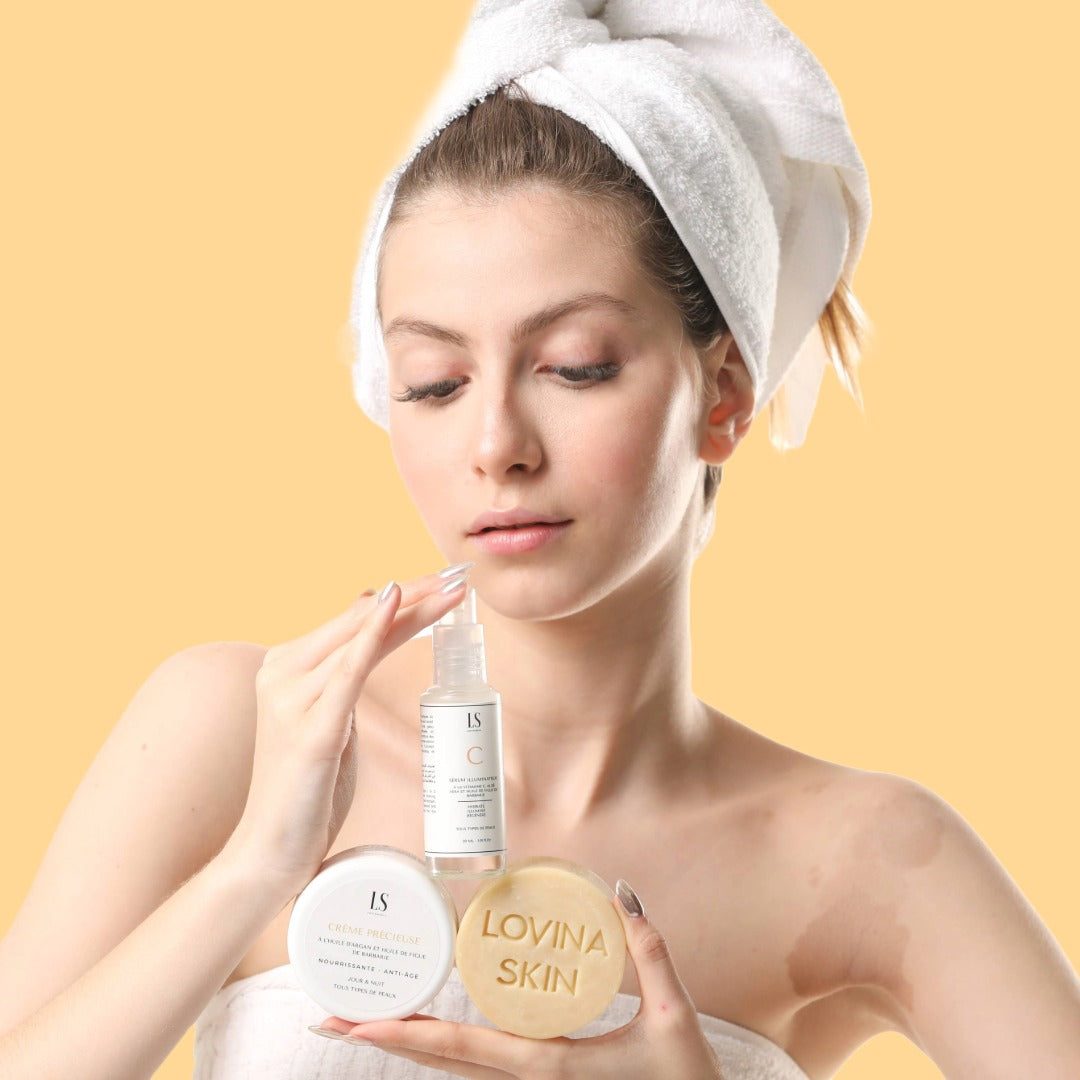 Une routine naturelle en 3 étapes simples à base d'ingrédients premiums, adaptée à tous types de peaux et qui donne de VRAIS RÉSULTATS, c'est notre promesse.